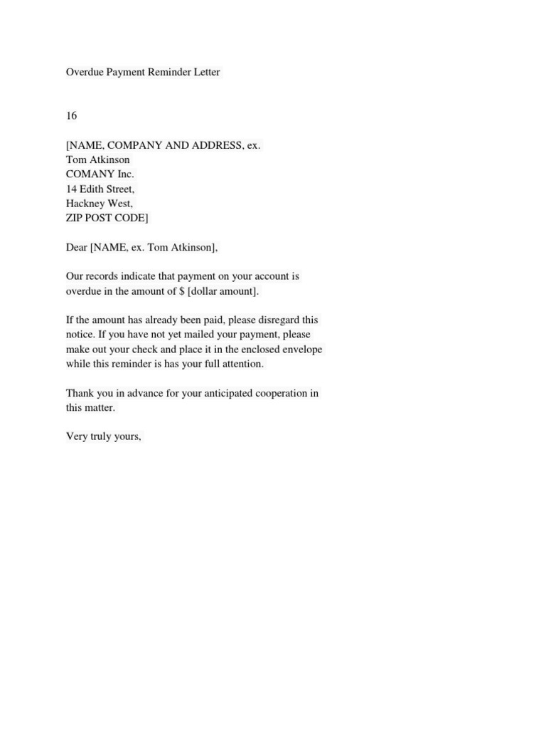 Payment Reminder : Payment Reminder Letter Format 16 Samples Examples _ An overdue payment reminder letter is a way to prompt an individual or company to settle a debt that has been unpaid for some time.